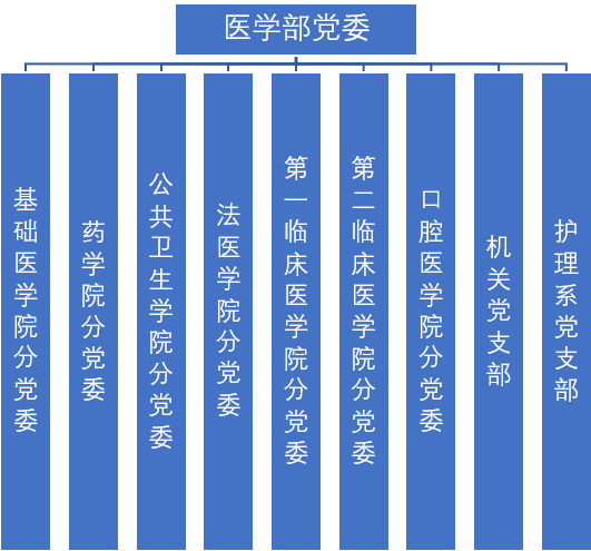 医学部党委成立于2021年5月,其前身为成立于2012年8月的医学部党工委。基础部分下设基础医学院、药学院、公共卫生学院、法医学院4个分党委,直属管理机关党支部和护理系党支部。共有党支部47个,其中教工支部5个,师生联合支部17个,学生支部25个。现有党员948名,其中教工党员340名,学生党员608名。