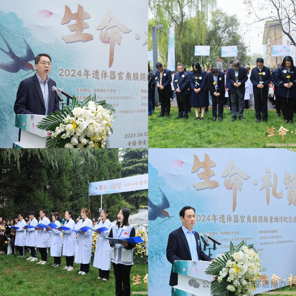 2024年4月2日,由西安交通大学医学部、陕西省红十字会主办,陕西省红十字遗体捐献中心、 陕西省红十字眼库、西安交通大学第一附属医院器官捐献中心、西安交通大学第一附属医院红十字眼库承办的《生命·礼赞》——2024年遗体、器官、角膜捐献者缅怀纪念活动在西安交通大学医学部校内陕西省红十字遗体捐献中心人文教育基地举办。
