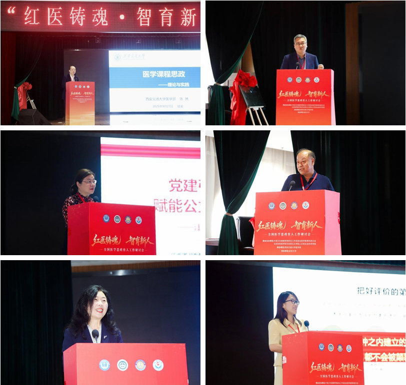 开幕式上,中国工程院院士、温州医科大学校长李校堃,中国医学科学院北京协和医学院党委书记、副院校长、中国卫生健康思想政治工作促进会副会长、医学教育科研分会会长邓海华,中国卫生健康思想政治工作促进会副秘书长罗锋,延安大学副校长、陕西省十三届政协委员王延峰,中国卫生健康思想政治工作促进会医学教育科研分会副会长、原西安交通大学党委常委、医学部党委书记陈腾先后致辞。致辞嘉宾从不同维度阐释了医学思政育人的时代意义与实践方向,强调要以红医精神为魂、以智能技术为翼,推动医学教育与思政工作深度融合。