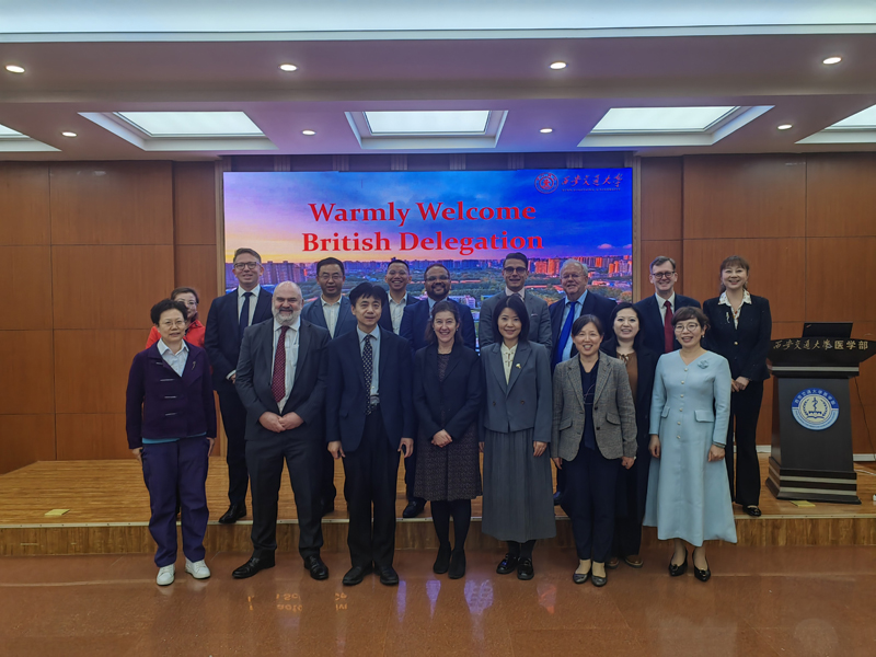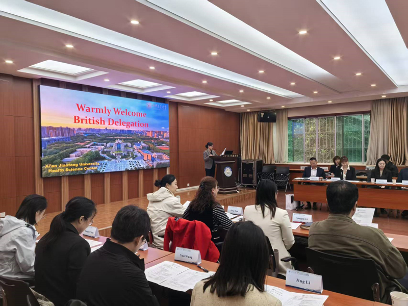 2025年10月11日下午,英国驻华大使馆及英国医疗机构代表团来访医学部,于护理楼二层多功能厅成功举行了交流研讨会。本次访问旨在搭建高水平的国际合作对话平台,推动双方在医学研究、人才培养、技术转化等方面的务实合作。陕西省人民政府外事办公室礼宾处郭丹瑞处长、英国驻华大使馆区域合作参赞贺蕊(Anthea Heffernan)女士、西安交通大学医学部副主任王友发等嘉宾出席会议并致辞。会议由基础医学院副院长吕海侠主持。