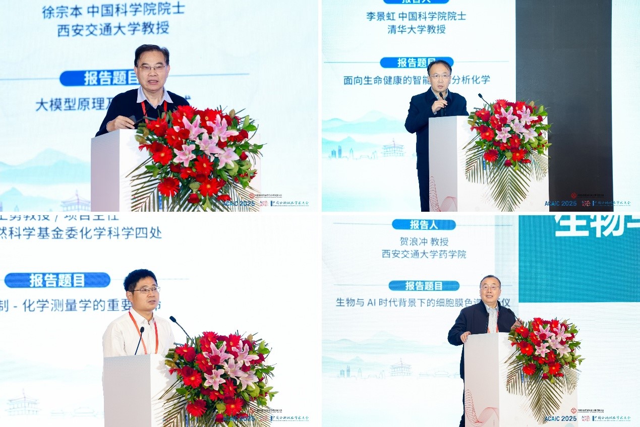 开幕式后精彩的大会报告环节,中国科学院院士、我校徐宗本教授,中国科学院院士、清华大学李景虹院士,国家自然科学基金委化学科学四处王勇主任,我校药学院贺浪冲教授分别做大会报告,聚集“AI赋能 创新转型”,深入探讨AI对分析仪器性能提升、功能拓展、应用开发、研发流程及创新管理等带来的影响,一同展望新技术、新产品、新应用、新范式以及新格局。
