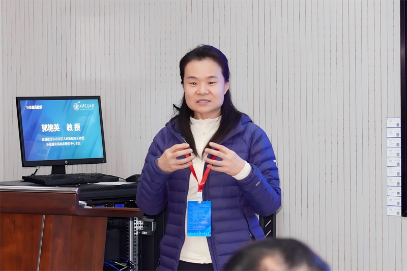 郭艳英教授在介绍学员构成时,特别提到了来自和田地区洛浦县的陈俊岐老师。她深情讲述道,陈老师作为四川人,毅然选择奔赴祖国最西部的边疆工作,生动体现了“到祖国最需要的地方去”的奉献精神,是全体学员扎根边疆、服务人民的楷模。