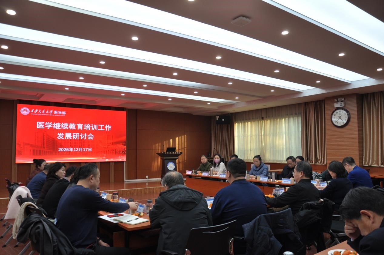 为促进学校医学继续教育培训工作高质量发展,2025年12月17日,医学部召开医学继续教育培训工作发展研讨会。继续教育管理处副处长张焱,医院管理处副处长谭婷,医学部“七院一系”分管教育培训的院(系)领导、培训管理部门负责人及医学部教育培训中心相关负责人等二十余人参会。会议由医学部副主任孟晓军主持。
