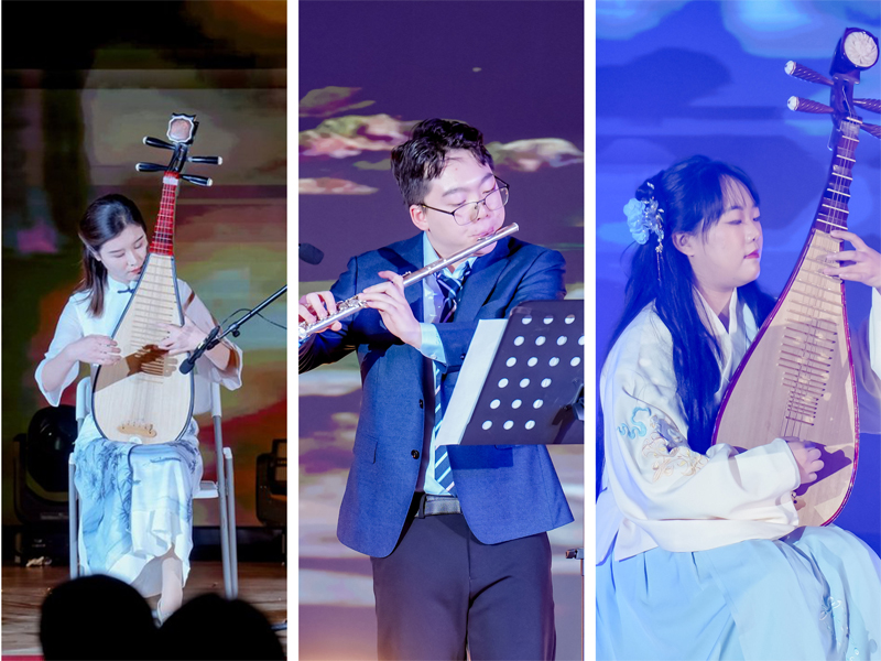 既有《渔舟唱晚》《阳春白雪》《琵琶语》等器乐独奏的清雅悠扬,也有《将进酒》《盛世中国》等朗诵节目的铿锵豪迈。