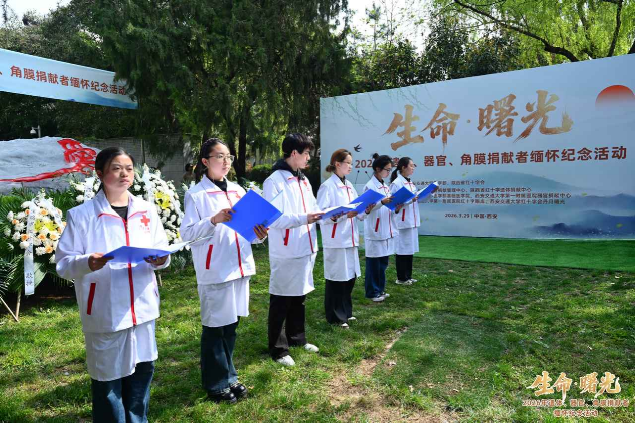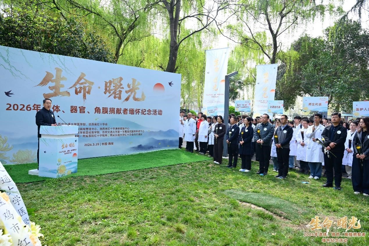 2026年3月29日,西安交通大学医学部“生命永恒”纪念园内庄严肃穆、翠柏含情。由西安交通大学医学部、陕西省红十字会主办,陕西省人体器官捐献管理中心、陕西省红十字遗体捐献中心、西安交通大学医学部基础医学院、西安交通大学第一附属医院器官捐献中心、西安交通大学第一附属医院红十字眼库协办的“生命 曙光”遗体、器官、角膜捐献者缅怀纪念活动隆重举行。活动由西安交通大学医学部遗体捐献办公室(陕西省红十字遗体捐献中心)主任徐自力主持。