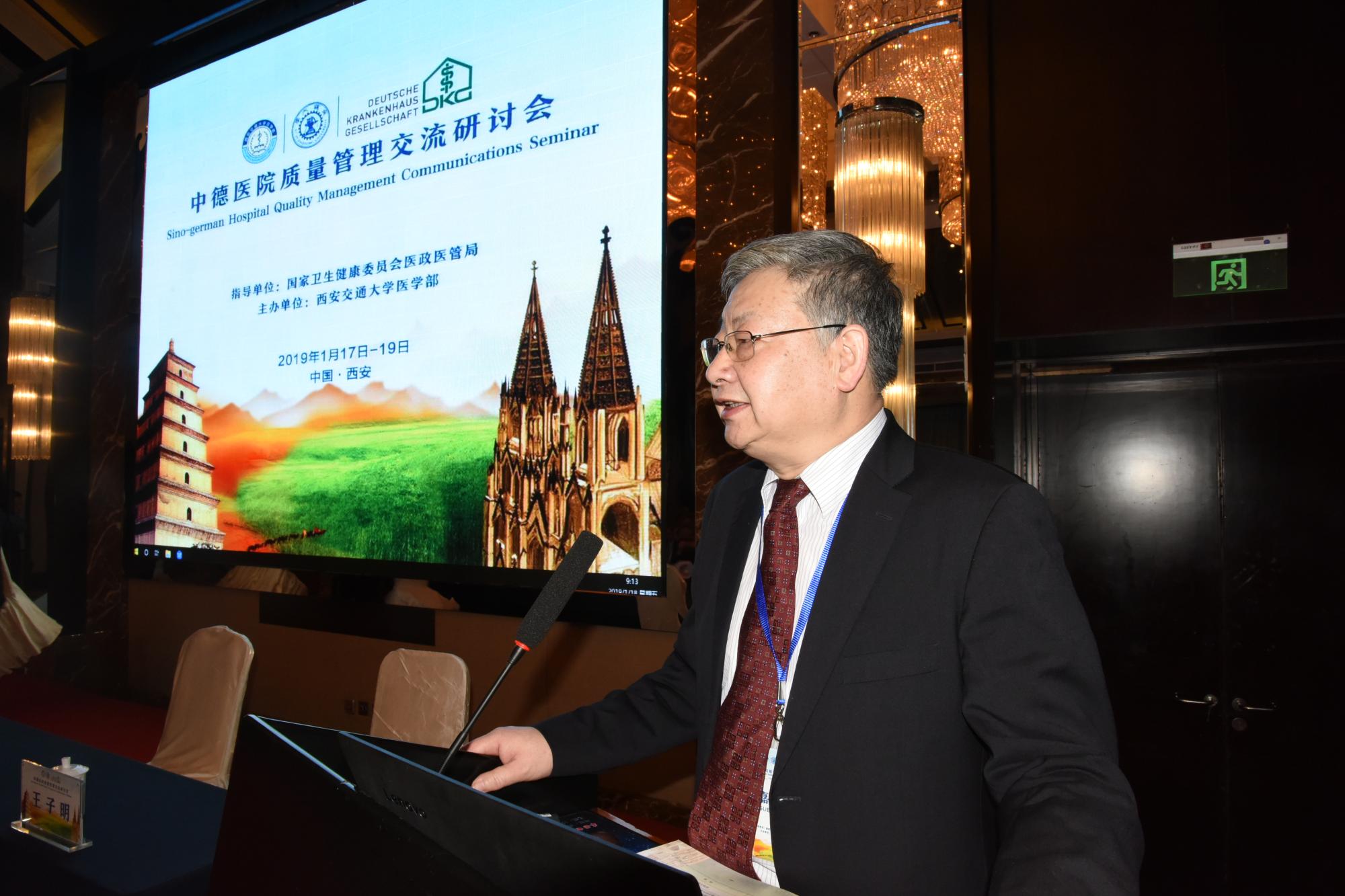 2019年1月18日,由国家卫生健康委员会医政医管局指导,西安交通大学医学部主办的“中德医院质量管理交流研讨会”在西安隆重举行。国家卫健委医政医管局副局长郭燕红、西安交通大学副校长颜虹、陕西省卫健委医政医管局局长安海燕、西安市卫计委副主任王红艳等领导出席。本次会议有德国专家,国家和各省市卫生健康委员会医政医管局的相关领导、质控中心负责人,各省综合性三级甲等医院主管副院长共计150余人参加。西安交大医学部副主任王子明主持会议。